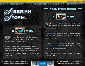 Siberian Storm features 5 reels of slots and 720 lines of pay. It is one of the bigger free online slots. You are bound to win big with this game. The combinations of winning lines are great and increase your chances of success. The mysterious white tiger is the symbol that triggers bonus rounds and free games, and it appears often enough to make you feel as if you have a high percentage of winning. The information bar below the slot icons is helpful while still being minimal and noninvasive. It features cash balance, coins available, coin value, your bet and the winnings from the spin. This makes Siberian Storm an excellent choice if you are looking for a game that will not distract you while playing.
