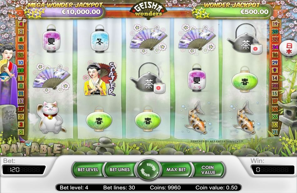 Geisha Wonders is a 5-reel, 30-line video slots game created in the modern Vegas slots style. NetEnt is known for creating some truly impressive slot games, and Geisha Wonders in particular is a game that impresses with attention to detail. A geisha theme could easily be crass, but this game is a work of art that honors the tradition rather than the oft-erroneous Western perception.